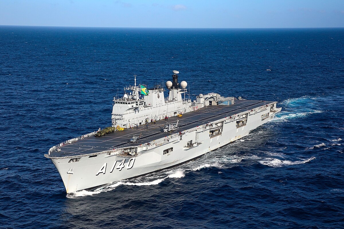 Com 203 metros de comprimento e 30 metros de altura, o “Atlântico” tem capacidade para operar até 18 aeronaves simultaneamente, entre hangar e convoo. A embarcação desempenha funções de controle marítimo, apoio logístico e missões humanitárias, como resgate em desastres naturais e evacuação de civis.