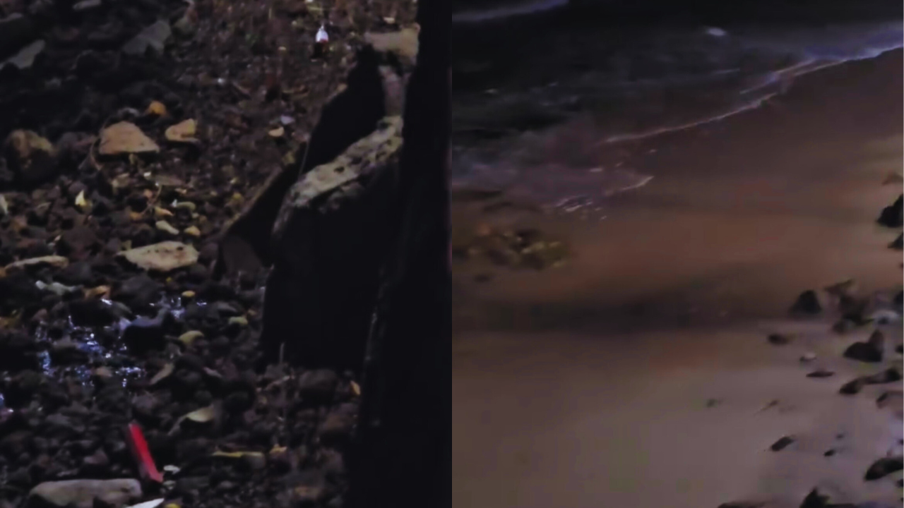 O vídeo mostra o esgoto fluindo de forma contínua e atingindo diretamente a água do mar na praia, frequentemente utilizada por banhistas e praticantes de esportes aquáticos. A forma como o despejo estava oculto sugere que a prática pode ser recorrente e intencional.